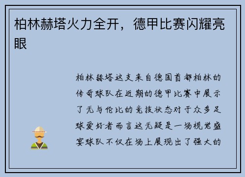 柏林赫塔火力全开,德甲比赛闪耀亮眼