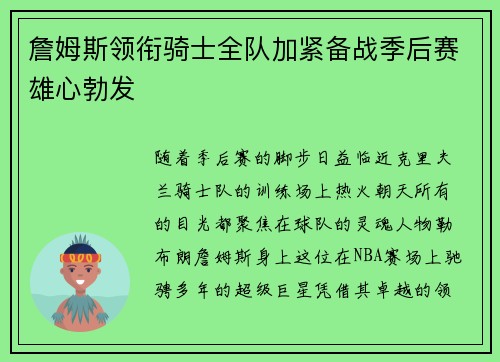 詹姆斯领衔骑士全队加紧备战季后赛雄心勃发