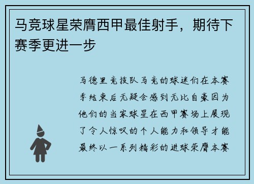马竞球星荣膺西甲最佳射手,期待下赛季更进一步